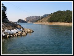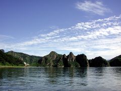 原名石河水庫,湖面狹長曲折,長達30多華里。湖長15公里,水深達50米。湖中有島,名“洞山劍峰”,島上建亭。湖面開闊,水質清澈。坐上游艇沿河道上行,可體會山重水復、曲徑通幽之妙。其河道婉轉,湖岸多懸崖峭壁,還有各種象形石,栩栩如生,維妙維肖。被譽為“北國小桂林”。