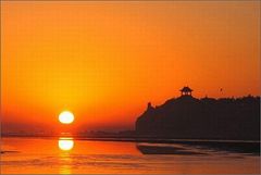 鴿子窩公園最為吸引人之處就是觀日出,觀日出的最佳地點是在赤土河口東西向石英脈的大斷裂帶的鷹角石上,日出時,萬籟俱寂,水天相連,色彩變幻;紅日涌出一霎,水上水下紅日相接,瞬間躍出水面,霞光、陽光灑滿山巒沙灘,猶如覆蓋上了一層金色的紗幕。每到旅游季節,游客們便早早地來到這里,一睹海上磅礴壯觀的日出景象。