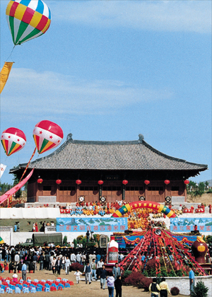 榆林堡往前,一路山石聳立,更添曠古情懷。過官廳鎮繼續向西到達涿鹿縣礬山鎮三堡村,遙遙地見一座整齊的城池,就是黃帝城了。這里幾乎沒有什么城了,只有祭祀華夏老祖宗的廟堂,端坐在高高的石階頂端。蚩尤是南方九黎族的首領,生性殘暴,漸失民心。為了壯大力量、擴充勢力,帶親信攻打北方的部落首領黃帝。黃帝在九天玄女的幫助下日夜操練,終于打敗了蚩尤,統一了華夏部落,建設了中國第一座城池——黃帝城。