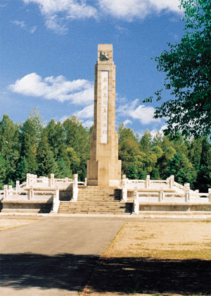 董存瑞烈士陵園,建在河北省隆化縣城西北的苔山腳下,伊遜河東岸。1954年建成后,又于1957年、1960年、1967年、1975年先后幾次擴建,初步形成了紀念體系。1987年,重建了烈士紀念碑,1991年,重建了董存瑞烈士紀念館,F在,董存瑞烈士陵園共占地71000平方米,有9項紀念建筑。陵園平面布局為中軸對稱式。在長396米的中央主軸線上,自南而北,依次是大門、牌樓、董存瑞烈士塑像、董存瑞紀念碑、烈士墓。大門橫額上是蕭克將軍題寫的園名“董存瑞烈士陵園”。董存瑞紀念館有張愛萍將軍題寫的館名。董存瑞烈士紀念碑碑體正面用金色大字鐫刻著原中國人民解放軍總司令朱德元帥的親筆題詞:“舍身為國,永垂不朽。”