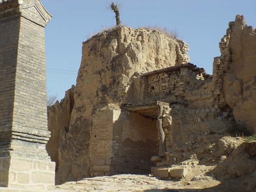 從紀念館向南到古長城平型關口要走十幾公里的山土路,一路沒有遇見其它車輛,轎車勉強能通過(下雨天萬萬不能走)。一個半小時后我們來到平型關口,關口凄涼殘破,遠望山下怎么也想不通這是過去通往晉北的著名關口、交通要道。翻過山口,下山走了五六公里遇見了一個較大的村落,村前有一扇大大屏風墻,上面寫有一人高的大字“平型關”,此景十分的眼熟。再向前走了半個多小時,回到了久違的108國道,在道口有旅游標示牌-----平型關戰役遺址。這時我才完全明白絕大多數人參觀平型關戰役遺址,是從這里,108國道向右轉,走到那個大村子,就以為到了目的地,感到沒什么意思,匆匆照幾張像就返回了(許多游客在村口的照片讓我眼熟)。